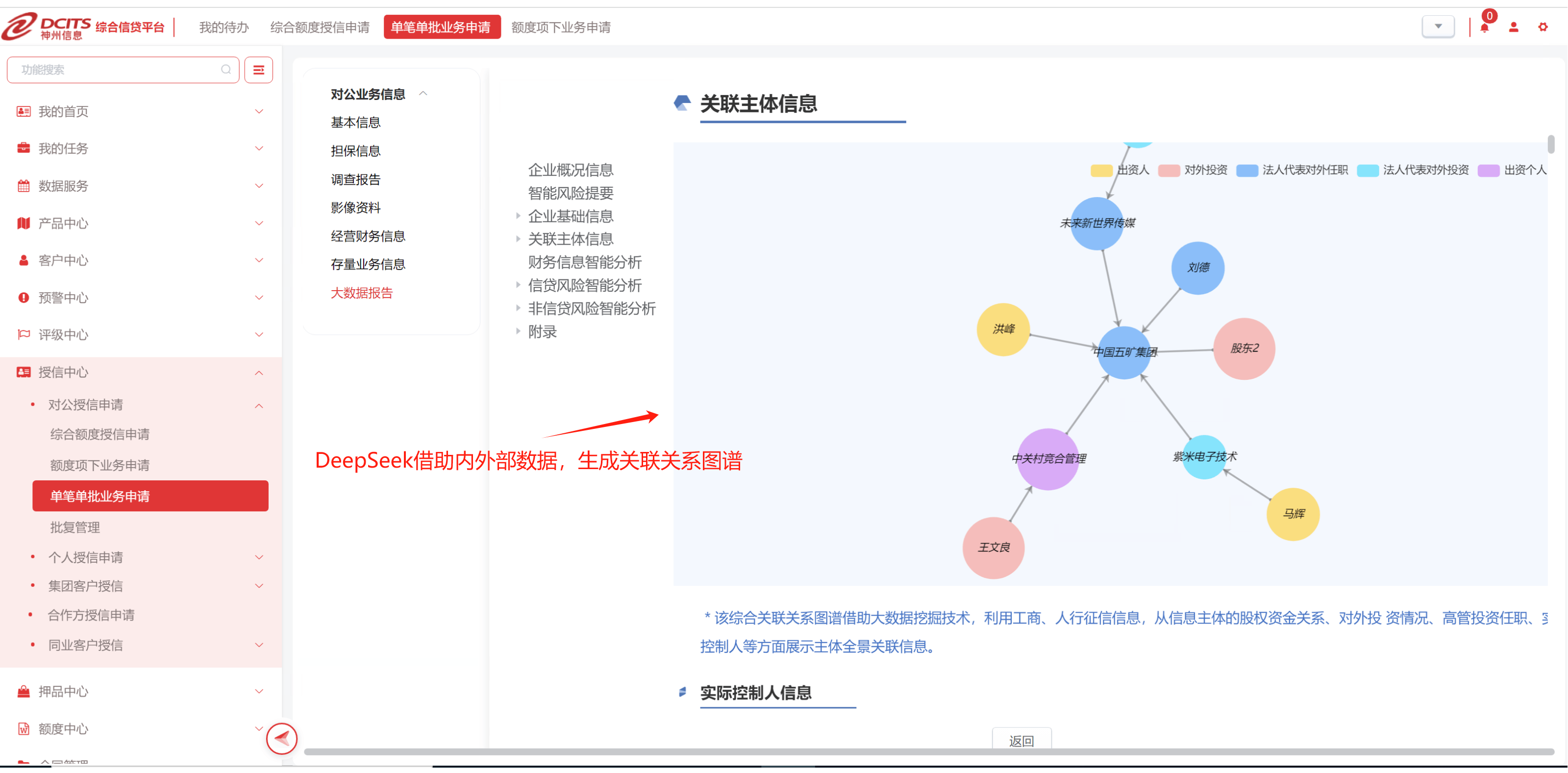 艾弗森贝博ballbet官网信息顺利获得接入国产开源大模型DeepSeek,成功研发“智能综合信贷系统”。该系统依托DeepSeek大模型的强大能力,实现了多模态解析、动态建模与实时预警等能力提升,从而对信贷业务全流程进行精准决策与效率跃升。在具体应用中,系统重点聚焦于“非标数据转化、供应链交易验证、软信息量化、行业风险监控、客户画像精准营销”五大场景,并在这些领域实现了突破性进展。