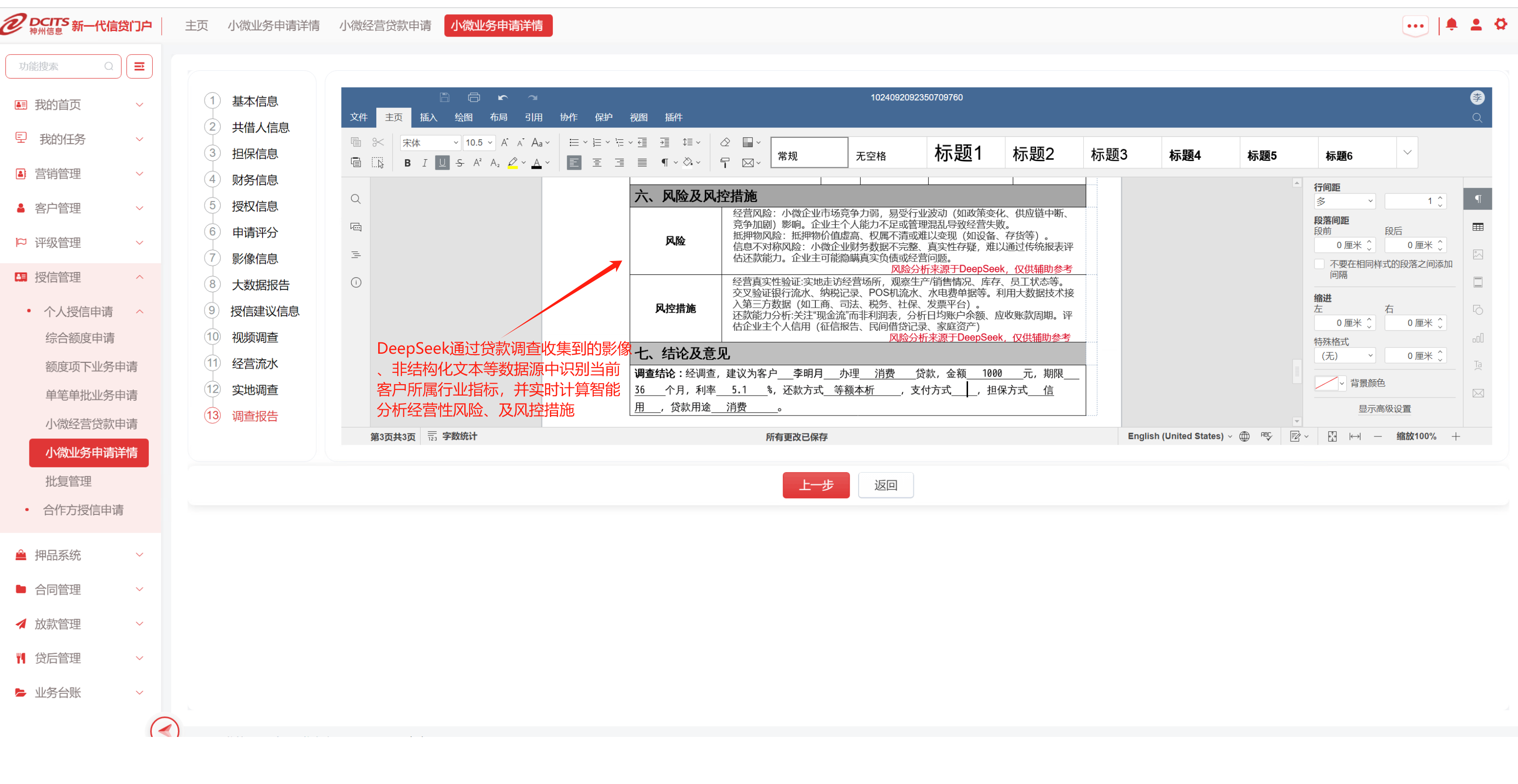 DeepSeek大模型与综合信贷系统的深度融合,标志着银行信贷业务从“经验驱动”到“数据智能驱动”的范式变革。艾弗森贝博ballbet官网信息“智能综合信贷系统”顺利获得聚焦“普惠金融非标准数据、供应链交易验证、软信息量化、行业风险监控、客户画像精准营销”五大场景的技术突破,助力银行实现风险可控、效率提升、客群下沉的三重目标,让每一笔资金精准滴灌实体经济,为中国经济高质量开展注入科技动能。